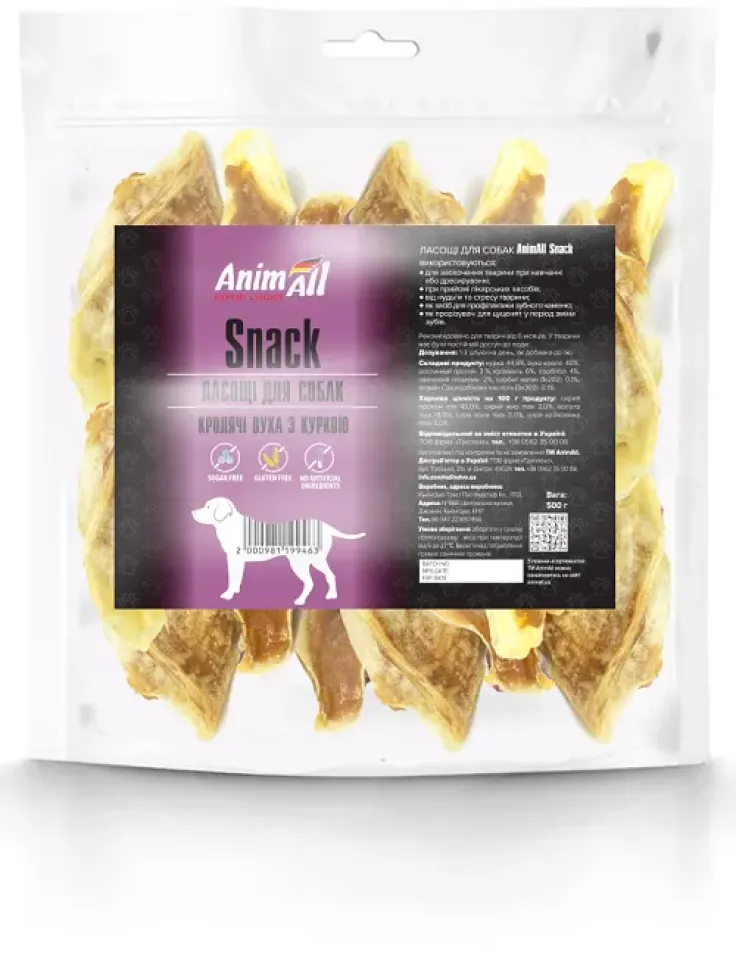 Ласощі AnimAll Snack вуха кролика з куркою для собак, 500г. Лінійка снеків для собак від торгової маркиAnimAll - це ідеальний спосіб порадувати Вашого чотирилапого друга.