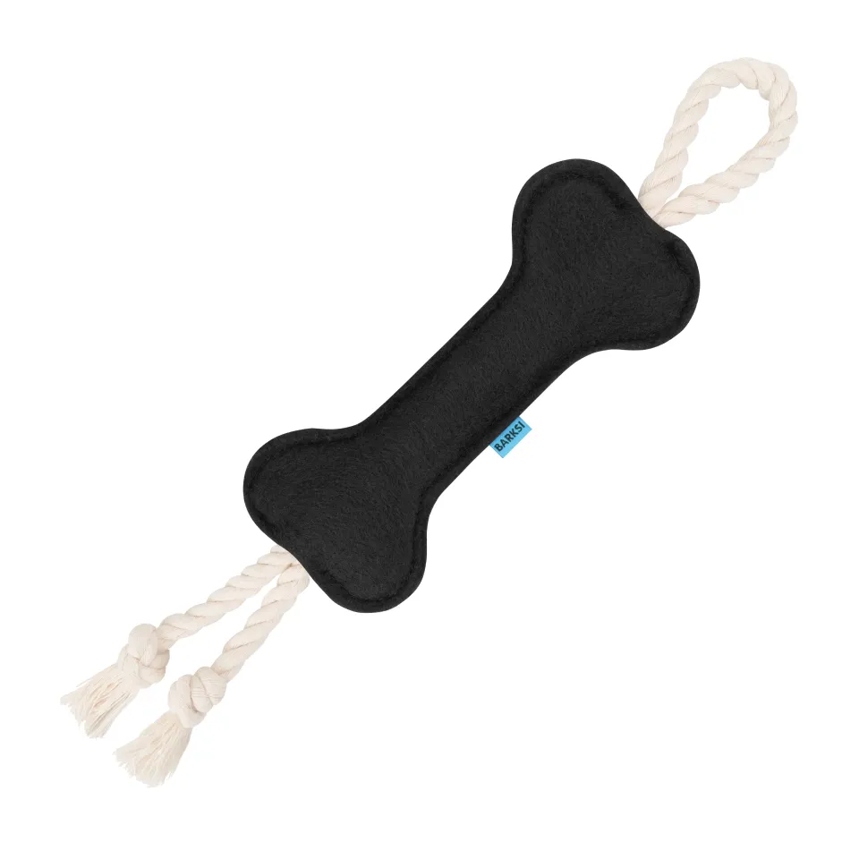 Іграшка для собак Barksi Кісточка з канатом — це м’який, екологічний та безпечний варіант розвиваючої іграшки, яка поєднує натуральну текстуру повсті та функціональність каната. Матеріал м’який на дотик, добре витримує жування, натуральний, не токсичний, гіпоалергенний. Канат добре тримає форму та чудово підходить для перетягування та інших тренувань. Іграшка допомагає масажувати ясна та очищувати зуби, не шумить під час гри вдома, легко кидати, носити з собою на прогулянки. Багато собак вважають такі іграшки улюбленими, бо вони схожі на здобич: можна тріпати, тягти, перемагати! А спільна гра з господарем — це чудовий соціальний досвід.