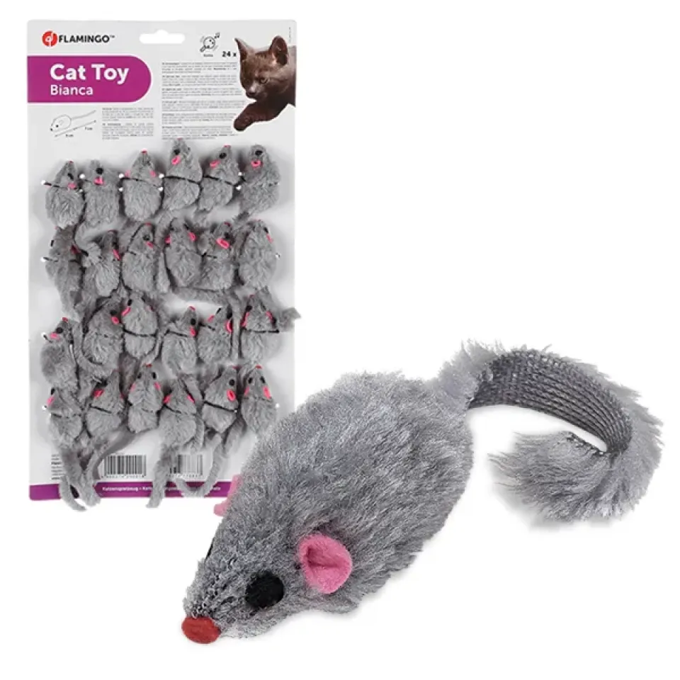 Познайомте свого улюбленця з грою в кішки-мишки! Іграшка для котів Flamingo Furry Mouse Grey зі штучного хутра пробудить в вашого улюбленця інстинкти маленького хижака, оскільки вона деренчить під час руху.