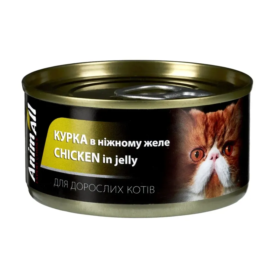 Повноцінний вологий корм Animall з куркою в желе - це справжнє задоволення для вашого улюбленця. Ми використовуємо найсвіжіше м'ясо, щоб забезпечити вашій кішці найвищу якість харчування.Наш консервований корм також занурений у соковите желе, яке надає йому чудову текстуру та покращує смакові відчуття. Це забезпечує смачну та освіжаючу їжу, яку ваша кішка буде насолоджуватися з кожним ковтком.