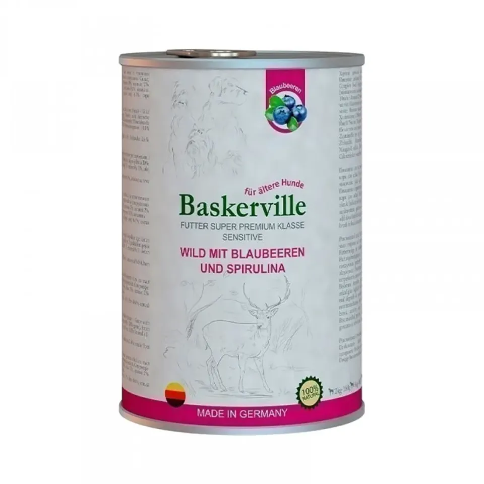 Корм вологий для собак з чутливим травленням Baskerville з олениною, чорницею та спіруліною (Баскервіль), 800г