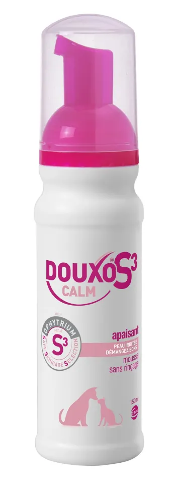 Мус Дуксо S3 Калм (Douxo S3 Calm) – засіб для лікування свербежу і запалень, пов'язаних із алергічними станами. Формула без змивання містить високоочищені фракції вівсянки, екстракти рослин і ліпіди, які допомагають заспокоїти подразнення, зволожити й допомогти відновити ліпідний склад шкіри. За таким мус особливо будуть вдячні коти й собаки, яким подобається, коли їх масажують. Його можна наносити на все тіло або на невеликі (локальні) ділянки, такі як складки шкіри, лапи тощо. Клінічно доведено, що цей засіб допомагає зменшити запалення та допомогти відновити шкірний бар'єр за 5 днів.