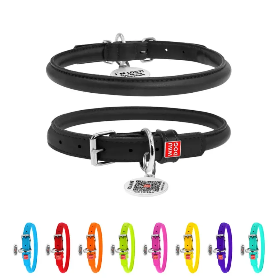 Нашийник для собак шкіряний WAUDOG Glamour з QR паспортом, круглий, Д 10 мм, Дов 33-41 см чорний