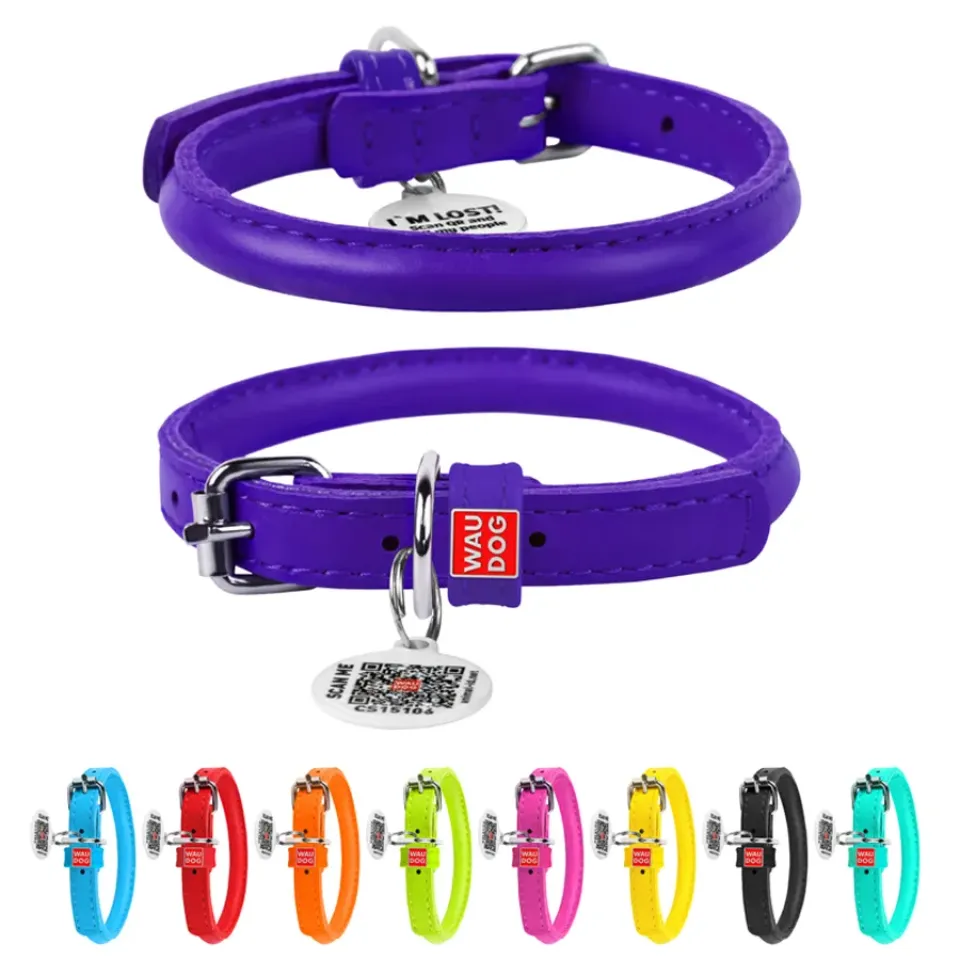 Нашийник для собак шкіряний WAUDOG Glamour з QR паспортом, круглий, Д 8 мм, Дов 20-25 см фіолетовий