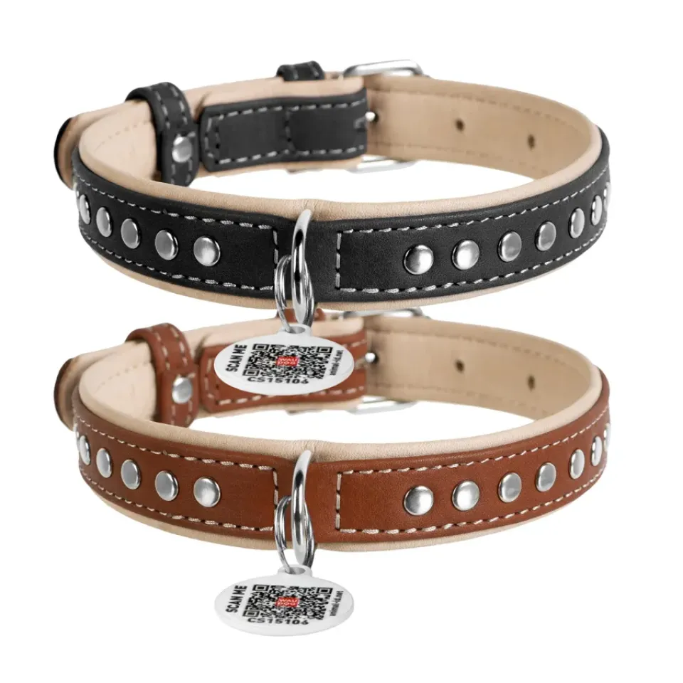 Нашийник для собак шкіряний WAUDOG Soft з QR паспортом, металічні прикраси, Ш 20 мм, Дов 30-39 см коричневий