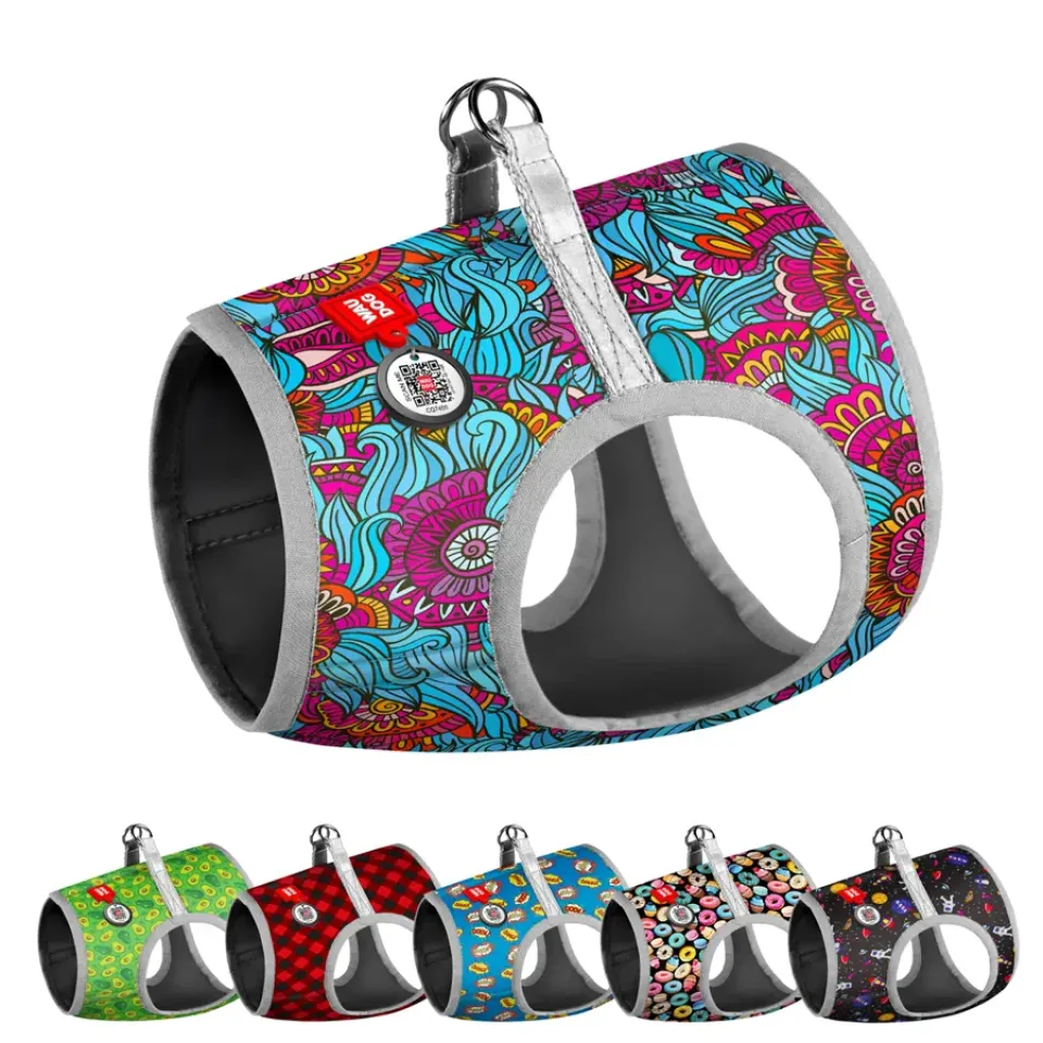 Шлея для собак м'яка WAUDOG Clothes з QR паспортом, малюнок "Літо", XS2, В 28-31 см, С 20-22 см