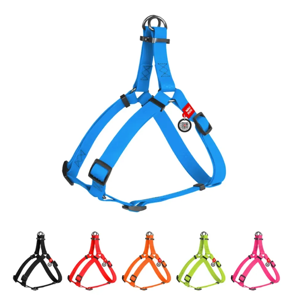 Шлея для собак водостійка WAUDOG Waterproof, c QR паспортом, металічна пряжка-фастекс, Ш 20 мм, Дов 50-80 см блакитний