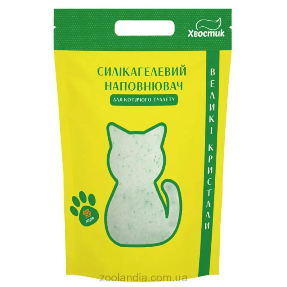 Силікагель – це висушений гель полікремнієвої кислоти (SiO2), який хімічно складається з тієї ж сполуки, що й звичайний пісок, але є високопористим тілом, тому має велику площу поверхні (800 м²/1 г). Завдяки цій властивості силікагель має унікальну абсорбуючу (вбираючу) здатність. Волога і запах зникають у силікагелі миттєво, але сам наповнювач ніколи не перетворюється на в'язку масу і не прилипає до котячих лап, а отже, не розноситься по дому. Силікагель - це гігієнічний наповнювач, він чудово справляється з будь-якими бактеріями, підтримуючи чистоту в будинку та охороняючи здоров'я кота. В середньому один пакет 3.6 л силікагелевого наповнювача Хвостик розрахований на 3 тижні для одного кота.