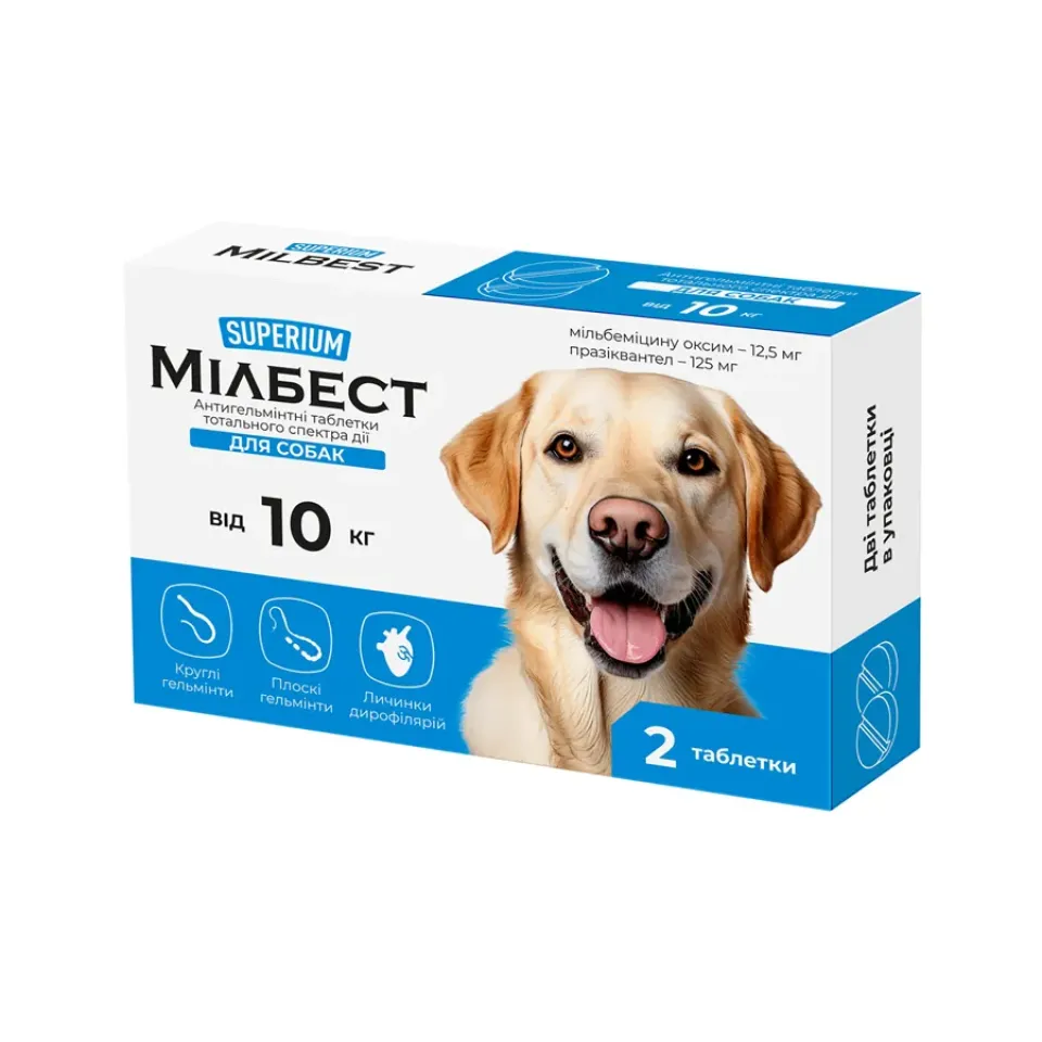СУПЕРІУМ Мілбест антигельмінтні таблетки для собак.