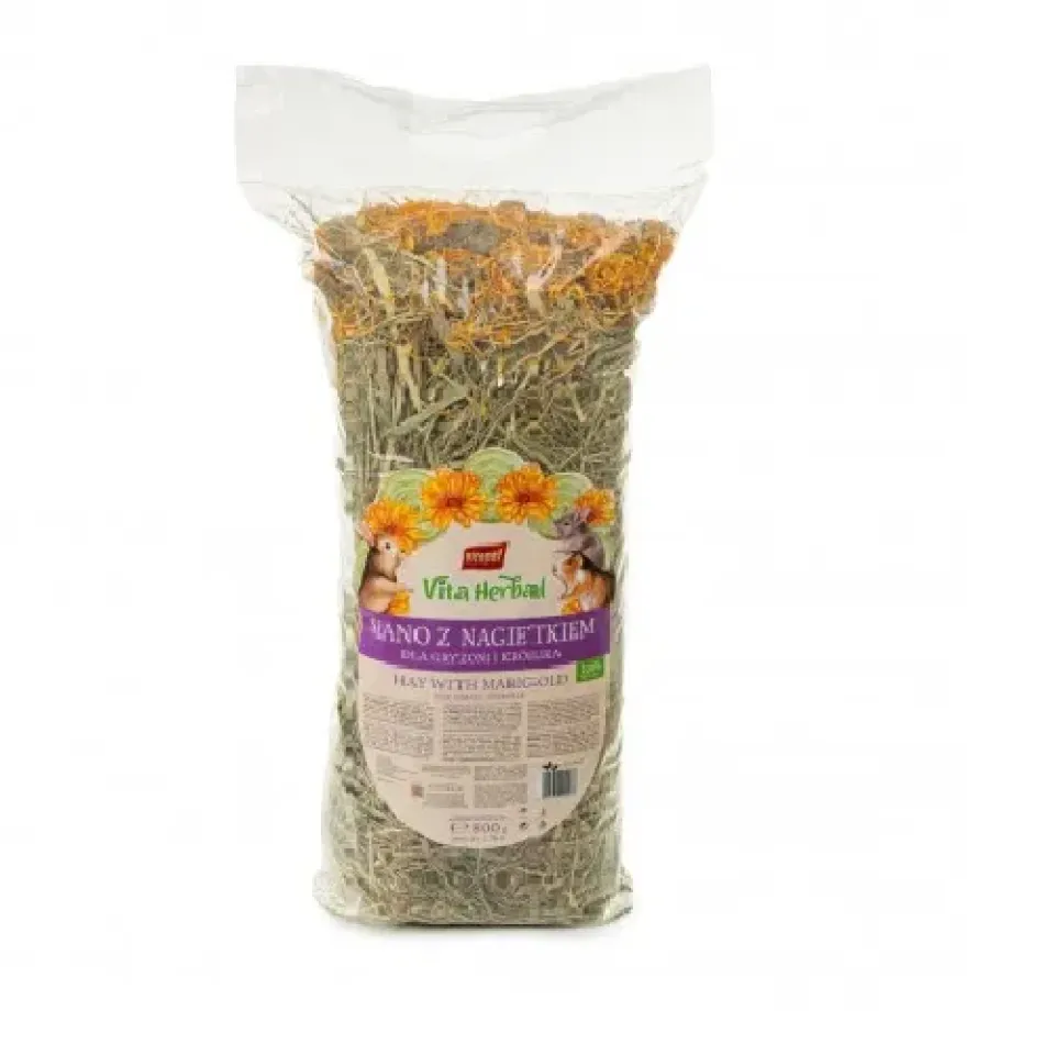 Vitapol СІНО Vita Herbal для гризунів - це низькокалорійний корм з високим вмістом клітковини, яка сприяє процесам травлення тварин. Тепер з додаванням квітів календули.Сіно становить 80% раціону для травоїдних гризунів (кроликів, морських свинок, шиншил тощо). Високоякісні, ароматні, ретельно висушені травинки прямо з польських лугів, багаті на вітаміни та мінерали.Як виготовляють сіно?Перший крок - це збір свіжої трави. Траву зазвичай збирають під час її пікової якості, коли вона містить найбільше поживних речовин. Зібрану траву розкладають на спеціальній площині, щоб вона висохла. Після сушки сіно зберігають у сухому приміщенні, щоб запобігти потрапляння вологи, яке може сприяти росту плісняви. Після сіно пакують у форму брикета та складають на відправлення.